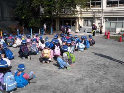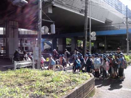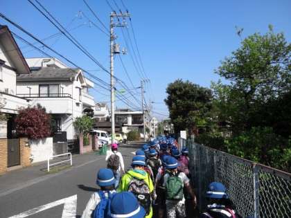 絶好の天気の中、3、4年生が遠足に出発します。4年生がリードして、楽しく過ごしてきます。まずは、富士見ヶ丘駅まで安全に歩きます。