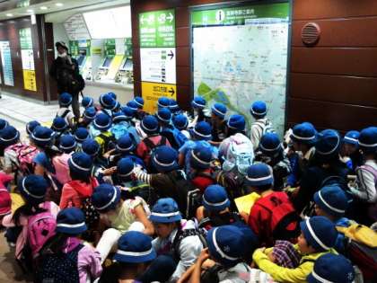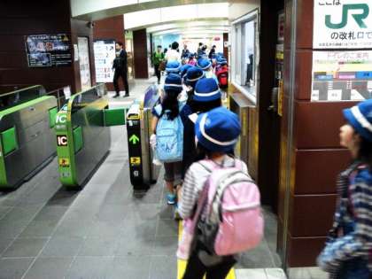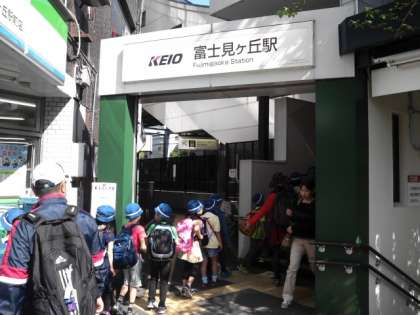 富士見ヶ丘駅から電車に乗り、吉祥寺駅で乗り換えをします。周りの人の迷惑にならないよう気をつけて動きましょう。