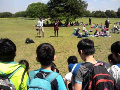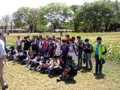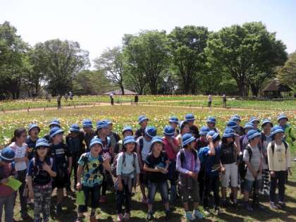 芝生ひろばでクラスごとに集合写真を撮りました。