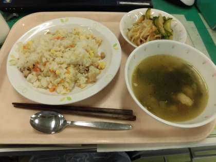 今日の給食は、チャーハン・中華風わかめスープ・白菜の中華風味・です。