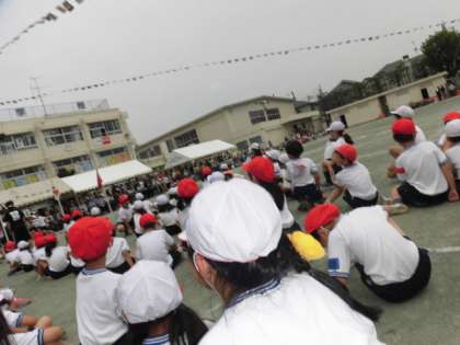 3年生の80m走。今年からコーナーを使っての徒競走。最後まで頑張って走りました。
