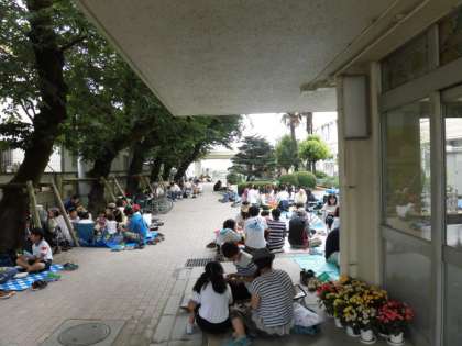 昼食です。午前中頑張って、おなかもぺこぺこ、おうちの方と食べるお弁当はとってもおいしかったと思います。ご準備ありがとうございました。