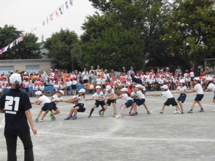 3年生の「それいけ!つな引き」みんなで力いっぱい綱をひきました。助けるために力いっぱい走りました。みんなで力を合わせたつな引きでした。