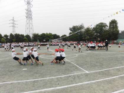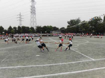 4年生の「棒引き」。速さ、力だけでなく、作戦も大事な棒引きでした。最後まであきらめずに棒を引いている姿がよかったです。