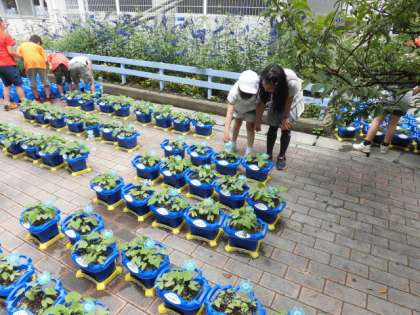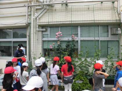子どもたちが運動会の練習に打ち込んでいる間に、アサガオもミニトマトも緑のカーテンのゴーヤやヘチマも子どもたちのようにどんどん成長していました。お世話しっかりと続けてよかったですね。