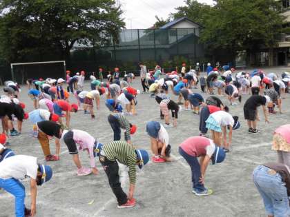 運動会が終わって最初のハッスルタイムは、6月7日(火)に実施するスポーツテストに向けて「(長座)体前屈」「立ち幅跳び」「反復横跳び」の練習をしました。1年生は初めてのスポーツテスト頑張りましょう。他の学年の人は、昨年度よりどのくらい記録が上がるか楽しみです。お家でもできることは練習してみましょう。