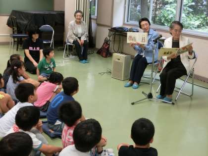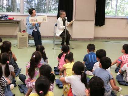 学校公開2日目。集会室で児童文学作家の岩崎京子先生とスタッフの方によるお話会をしていただきました。「ねずみくんのチョッキ」「ねずみのよめいり」「あのときすきになったよ」のお話をしていただきました。みんな真剣に聞いていました。本がもっと好きになったと思います。明日は、2年生にしていただきます。(2年1組2校時、2年2組3校時)
