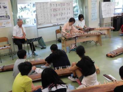 6年生が、舩川長子先生をゲストティーチャーに迎え、お箏に挑戦しました。お箏と尺八の演奏を聴いたり、自分たちで実際にお箏を演奏したり貴重な体験をさせていただきました。初めての演奏でしたが、たくさんお箏を持ってきていただき、たくさん箏と触れ合うことができました。ありがとうございました。