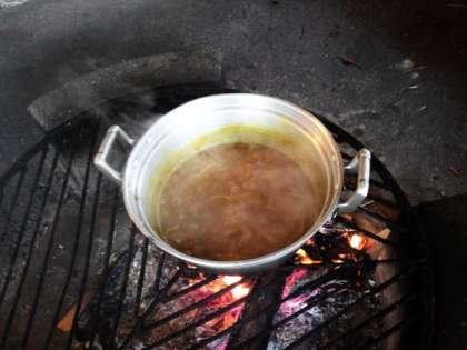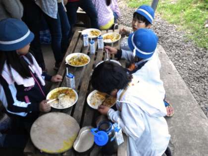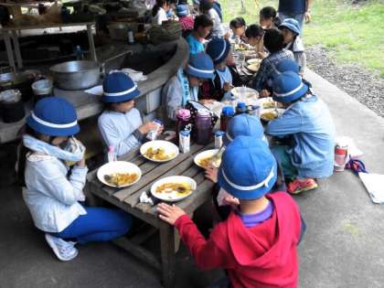 みんなで協力して作ったカレーライス。きっとおいしいでしょう。いただきます。