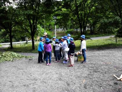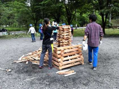 19時からのキャンプファイヤーに向けて、係の子どもたちが準備をしています。楽しいキャンプファイヤーにしましょう。
