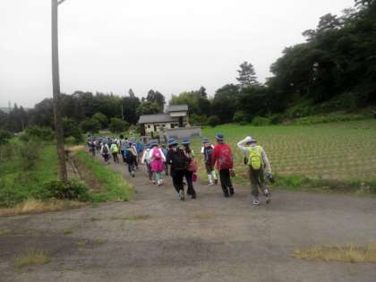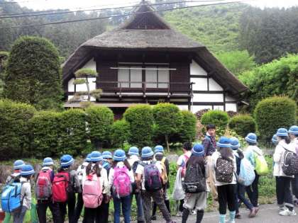 ふじやまビレジを後にして、ガイドさんの案内で川場村を歩いています。たくさんの自然に触れましょう。