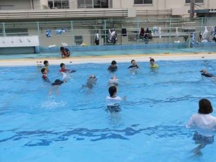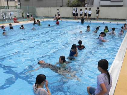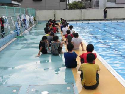 5年生が着衣泳を行いました。服を着たまま水に入ると水着の時と違った感覚になります。もしも服を着たまま水に落ちてしまった場合に、慌てないで力を抜いて浮くことが大切です。水による事故は命にかかわります。夏休み水による事故には十分に注視していきましょう。