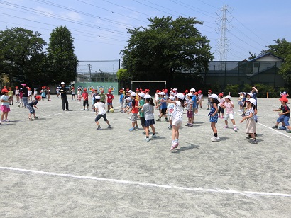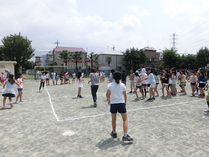 1学期最後のハッスルタイムは「ドッジボール」です。良い天気の中、校庭いっぱいに広がって、学年ごとにドッジボールを行いました。5・6年生は、男女別で5年対6年の対戦で盛り上がりました。どの学年の楽しく活動しました。