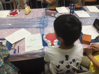日光彫りの体験が始まりました。説明をしっかり聞いたから彫り進めます。上手にできるかな?