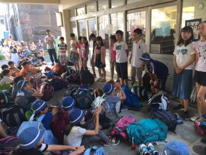 渋滞もなく、予定通りに学校に到着。たくさんのお迎えありがとうございました。3日間、実行委員を中心に充実した生活が送れました。たくさんの人に支えていただいたことに感謝し、2学期も頑張りましょう。明日からの小学校最後の夏休みも充実して過ごしてください。