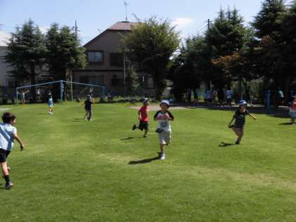 2学期最初の中休み、久しぶりに大人数で元気に遊んでいます。転校してきたお友達の手を引いて一緒に遊んでいる姿も見られます。2学期も広い校庭で力いっぱい体を動かして過ごしましょう。