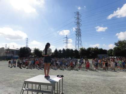 2学期最初の児童朝会でした。2学期も引き続き6年生がスピーチをしてくれます。2学期第1回目のスピーチも暑い中でしたが、頑張って行ってくれました。聞き方も上手でした。2学期もスピーチ、頑張って取り組んでいきましょう。