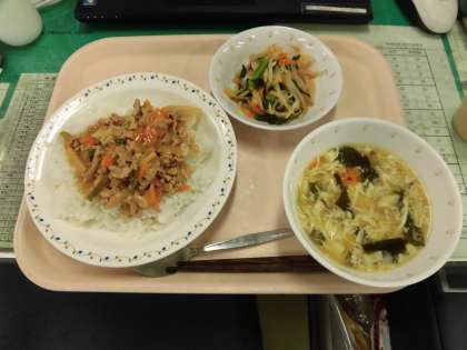 今日の給食は、スタミナどん・やさいのおかかかけ・かきたまじる です。