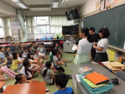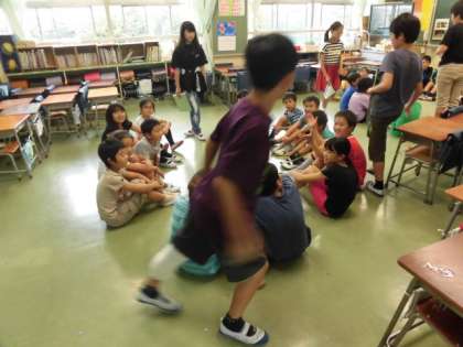 給食を食べた後は、なかよし班で遊びました。雨で校庭は使えませんでしたが、体育館やそれぞれの教室でドッジボールをしたり、ハンカチおとしをしたりして、楽しく活動しました。2学期もなかよし班で楽しく遊びましょう。