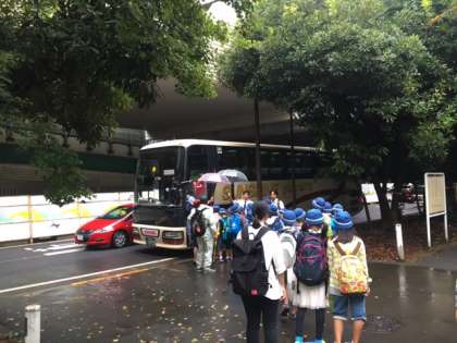 4年生が社会科見学に出かけます。見学場所は、中央防波堤埋立処分場、水の科学館、有明清掃工場です。1学期から、環境問題を学習している4年生。今日は、あいにくの天気ですが、普段は行けないところに行くので、しっかりと見て、聞いて学習を深めましょう。