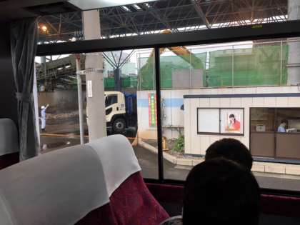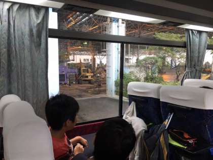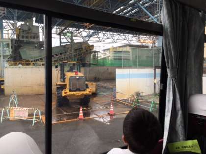 バスに乗って、処分場の見学です。最初は、粗大ゴミを粉砕している様子です。