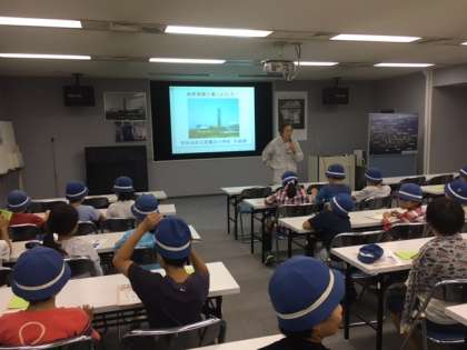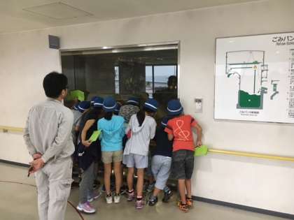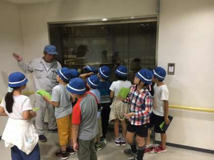 最後の見学場所の有明清掃工場に到着。説明を聞いて見学するクラスと見学してから説明を聞くクラスに分かれます。見学は、3グループでまわります。しっかり見て、聞いて学びます。