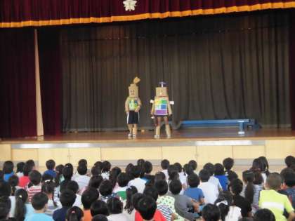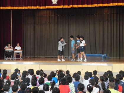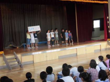 みんなが楽しみにしている「むさしまつり」が二日後に迫りました。今日の児童集会は、各学級のお店などの宣伝をしました。たくさんのお客さんにきてもらえるよう、それぞれの学級が工夫を凝らして楽しく宣伝を行いました。当日がますます楽しみのなりました。