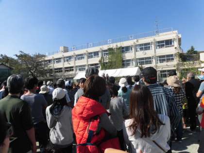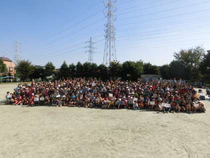片付けも終わり閉会式です。味とアイデアとチームワークの各賞の発表をして、最後は全員で集合写真を撮りました。最後までみんなで協力した充実の飯ごう炊さん会になりました。これまで準備をいただいたPTA役員、飯盒係、地域班の皆様、お手伝いいただいたおやじの会の皆様、最後まで子どもたち、保護者の活動を見ていただいた来賓の皆様、本当にありがとうございました。