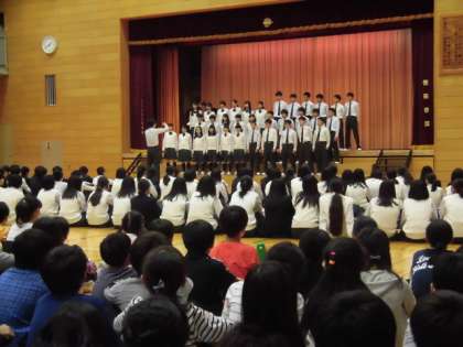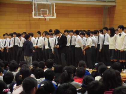 烏山学舎の3つの小学校(給田小・烏山北小・武蔵丘小)の6年生が、烏山中学校で22日に行われる学芸舞台発表会の3年生の合唱のリハーサルを拝見しに烏山中学校にいきました。5つのクラスの曲を聴かせていただきましたが、どのクラスの合唱を迫力があり素晴らしいものでした。合唱コンクールまでの取り組みや中学校の生活のことも教えていただき中学校の様子が少しわかったようです。貴重なリハーサルの機会を小学生のために公開していただきありがとうございました。