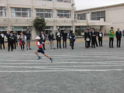 2日(水)の5時間目の5年2組の体育は、世田谷区の小学校からたくさんの先生に見に来ていただきました。少し寒い中でしたが、子どもたちはグループごとの50m走のタイムを計ったり、歩数を確にんしたりしながら学習に取り組みました。授業のあとは、協議会を行い、多くの先生方から今後の授業に生かせる多くの意見をいただきました。