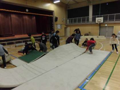 6年生が、6校時に学芸会に向けて体育館の会場準備を協力してくれました。体育館が「むさし劇場」に変身です。6年生は、最後の学芸会です。よい思い出ができるようがんばりましょう。