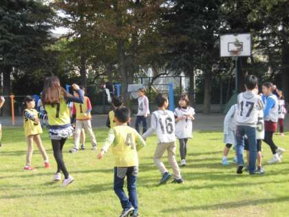 今日は、久しぶりの「なかよし給食」各教室で、お話をしながら楽しく給食を食べました。給食のあとは、校庭や体育館、教室での班ごとの遊び。6年生が計画した遊びをみんなで楽しみました。校庭では、冬芝の養生も終わり、緑の芝生で元気に遊ぶグループもありました。