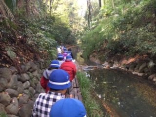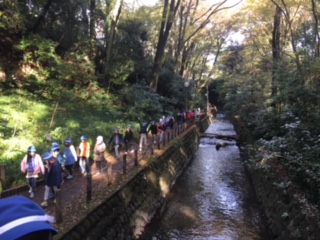 等々力渓谷に到着。水がとてもきれいです。鳥のさえずりが聞こえています。
