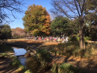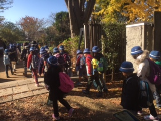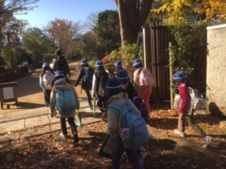 次太夫堀公園に到着。民家園で班ごとに昔の民家の様子を見学します。