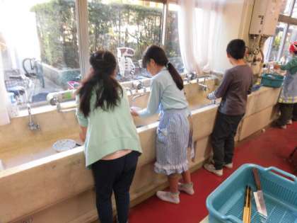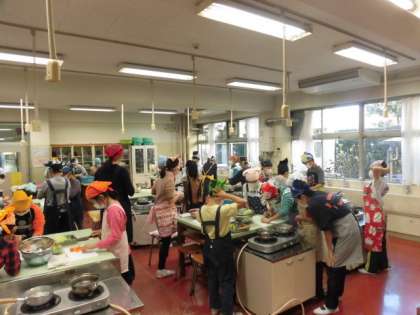 5年生が調理実習を行いました。メニューは温野菜サラダです。包丁でにんじんを切ったり、材料をゆでたり、ドレッシングも自分たちで作りました。片付けまで協力して楽しく取り組みました。