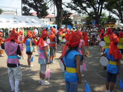 夏休み最初の土曜日に、ふれあい祭りで「七月エイサー」を再び多くの方に見守られながら踊ることができました。ギラギラと輝く太陽の下気持ちよく踊ることができました。