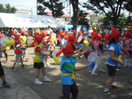 運動会では、「七月エイサー」に取り組み、ゆったりとした難しいリズム挑戦しました。集団で合わせると美しい流れを作り出すことを発見しました。