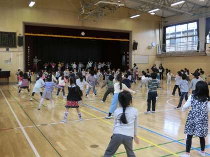 烏山北保育園の4・5歳児園児さん44名をお迎えして、1年生が「どうぞ、よろしくの会」を開きました。自己紹介をして、自分たちで作った名札をプレゼントしました。運動会で踊った「ウンタカダンス」を一緒に踊ったり、校内めぐりや1年生の教室で色々なことを紹介しました。保育園の園児さんたちは、とても嬉しそうでしたね。