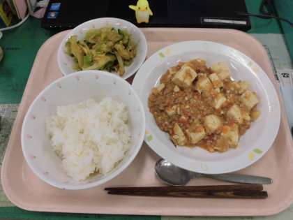 今日の給食は、ごはん 麻婆豆腐 やさいのちゅうかかけ です。