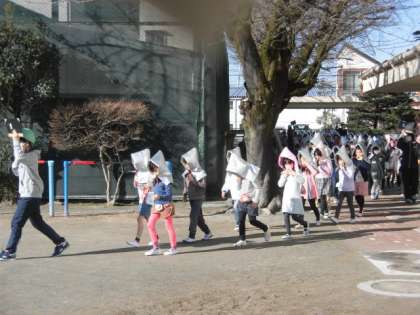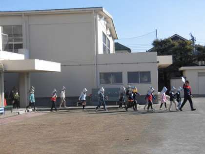 今日が、今年度最後の避難訓練でした。子どもたちが登校してすぐの8時30分に地震が起こり、家庭科室から火災が発生したという想定で実施しました。来週の3月11日は、東日本大震災が起こった日です。これからも訓練を真剣に行いながらもしもの時に落ち着いて行動できる力をつけていきます。