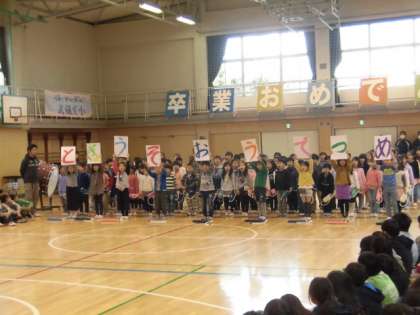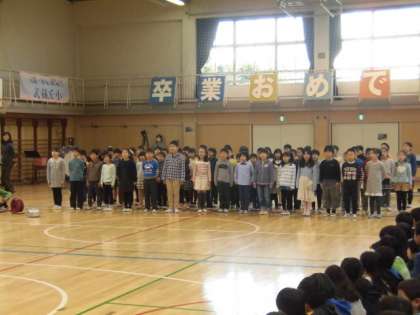 延期にしていた6年生を送る会を実施しました。6年生は全員出席。他の学年は少しお休みの子がいて残念でしたが、お休みの子の分もみんなで協力して素敵な6年生を送る会にしてくれました。入学から6年生にお世話になった1年生は「きらきら星」を鍵盤ハーモニカで演奏しました。2年生は、きれいな声て「カントリーロード」を心をもめて歌いました。