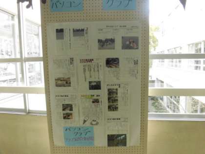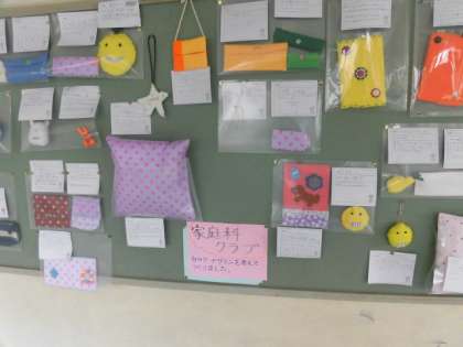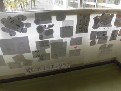 今年度のクラブ活動で作成したマンガ・イラストクラブ、パソコンクラブ、家庭科クラブの作品が展示されています。力作ぞろいですので、保護者会の折などにご覧下さい。