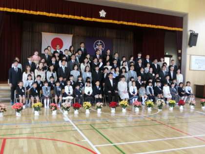 入学式のあとは、体育館で学級ごとにお家の方と一緒に記念写真をとりました。みんな笑顔で写真におさまりました。明日からは、家の人と一緒の登校ではありませんが、安全に登校できるようにしましょう。89名の一年生と転入のお友達を迎えて今年は473名でスタートです。※1組の写真無くてすみません。