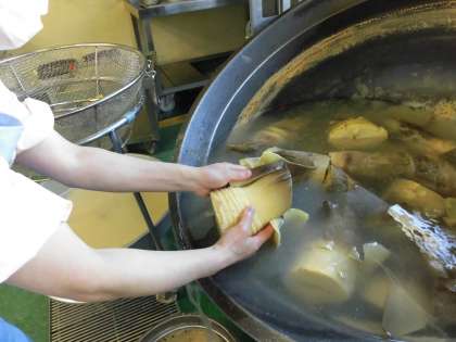 今日は、給食室で、新せんな筍をゆでて、筍ご飯にしました。