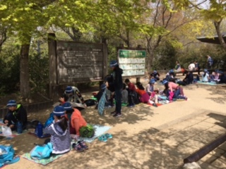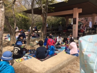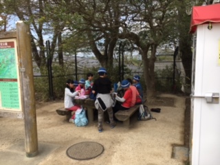 待ちに待ったお弁当です。グループでまとまって美味しくいただいています。準備ありがとうございました。