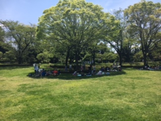 チェックポイントを回ってゴールするグループも出てきました。昼ごはんを食べる場所をとって準備しています。
