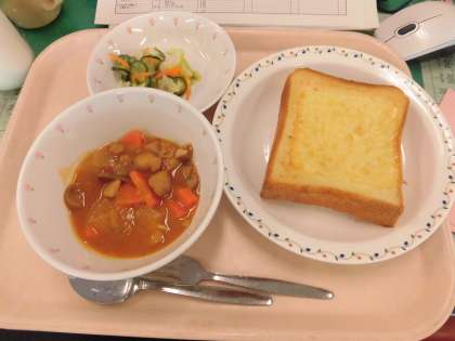 今日の給食は、チーズトースト 鳥肉のクリームに フレンチサラダ です。
