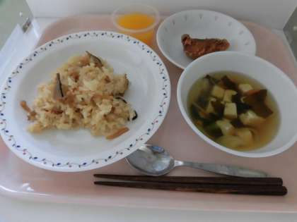 今日の給食は、ちゅうかおこわ かつおの竜田あげ すましじる フルーツゼリー です。