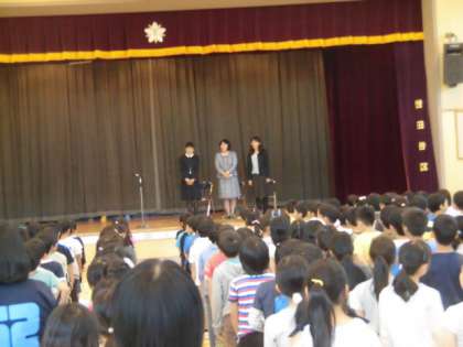 3月まで武蔵丘小学校にお勤めになった先生方、主事さんをお招きして離任式を行いました。お別れしてからまだ1か月しかたっていませんが、懐かしい顔を見せていただき子どもたちも喜んでいました。武蔵丘小での思い出を大切に新しい学校でのご活躍をお祈りいたします。ありがとうございました。