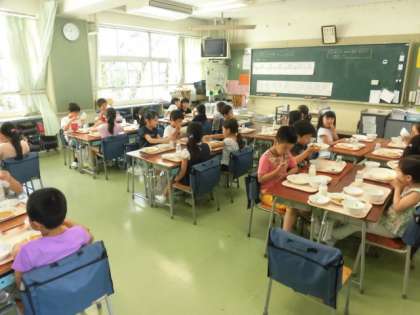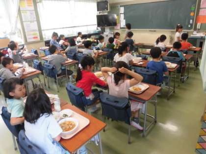 さやむきが終わった後は、気がついたことや感想をワークシートにまとめました。給食には、自分たちがさやむきしたグリーンピースご飯がでました。いつもよりおいしくいただきました。